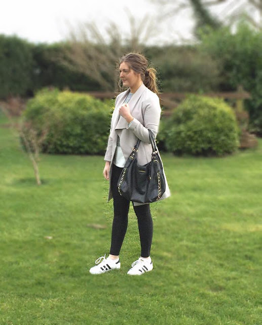 A couple of weeks ago I attended New Look's Spring Summer Press Event where they kindly gifted me a gift voucher which I could spend on anything I wanted in store. I decided on this Cameo Rose waterfall jacket and Parisian print top. My leather pants are also from New Look but I got them last year, you can shop a similar pair here. No sports luxe trend is complete without stylish trainers and I wouldn't be a fashion blogger without a pair of adidas Superstar Originals.